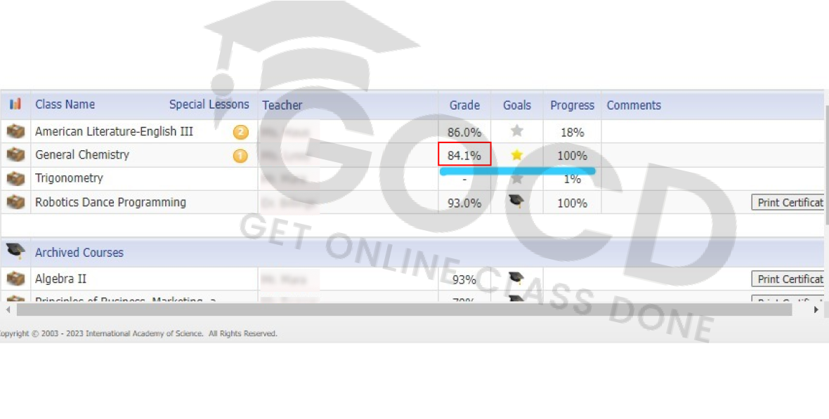97% of Students Using Get Online Class Done Received an A+ or A